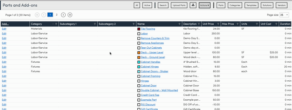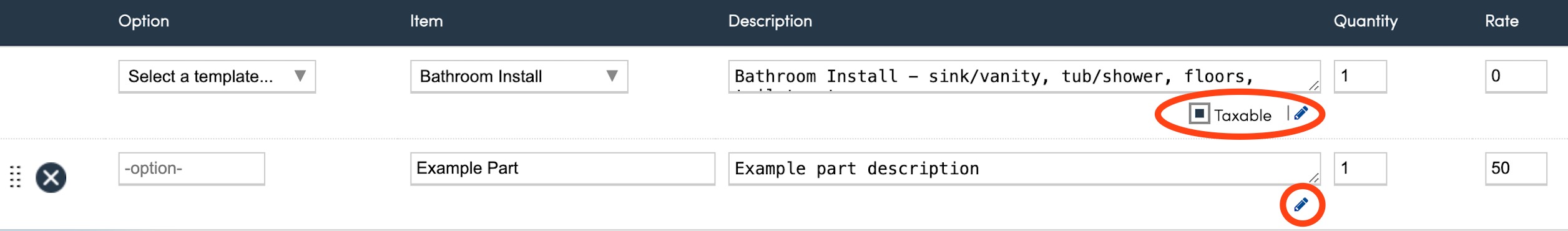 Then, head over to Control Panel > Parts/Add-Ons and edit your relevant parts to make them default as taxable on proposals and invoices.