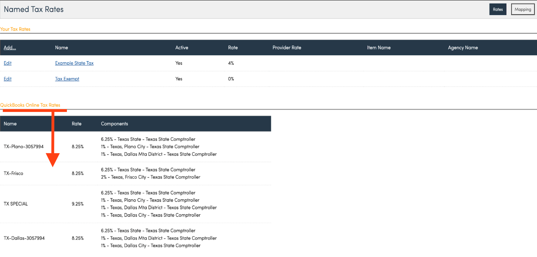 Once you're new tax rates are created, click the Mapping button at the top right corner.